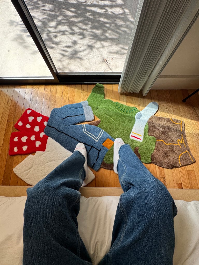 Designed to mimic a chaotic pile of laundry, this irregularly shaped rug is cleverly crafted to look like casually tossed clothing items, including socks, jeans, underwear, sweaters, and more. It captures that all-too-familiar scene from real life, but transforms it into a playful, eye-catching piece of floor art.