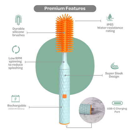 Effortless Cleaning: The electric cleaning brush is designed to make cleaning baby bottles, sippy cups, and other feeding accessories fast and effortless.