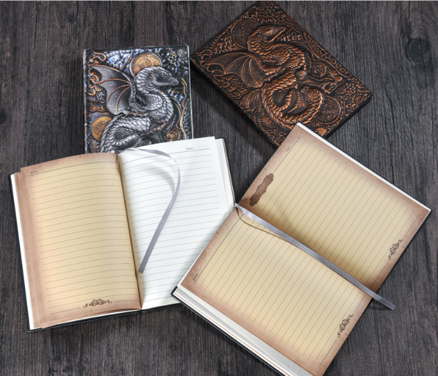 • Hand-tooled leather cover - Each dragon motif individually sculpted