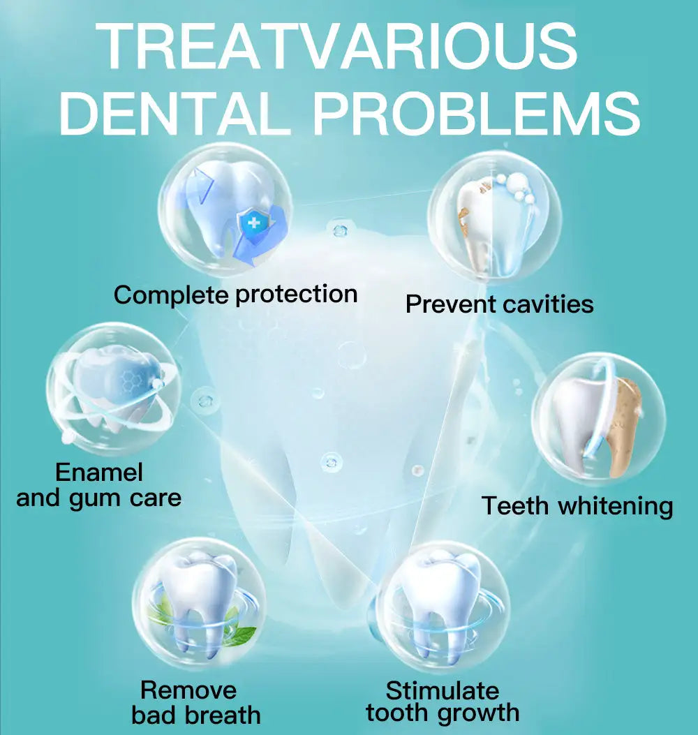 Eist Produkt kombinéiert eng fortgeschratt, fluoridfräi Formel mat natierlechen Zutaten fir eng ëmfaassend a sanft mëndlech Pfleeg. Dëst Zännpulver notzt d'regenerativ Kraaft vum Nano-Hydroxyapatit fir den Zännschmelz ze remineraliséieren, Karies ze reparéieren, Parodontitis a Mondgeschwëster effektiv ze behandelen an zréckzéiend Zännfleesch ze verbesseren. D'Formel enthält och berouegend Aloe Vera, antioxidanträiche gréngen Téi, natierlech ofgeleeten Xylitol a frësch Minze, déi Zännfleeschschmerzen lindern, Antioxidantienschutz bidden, den Otem erfreschen an d'allgemeng mëndlech Gesondheet förderen. Zesumme mat eiser speziell entwéckelter ultra-mëller Aktivkuelzännbürk botzt et sanft d'Zänn an d'Zännfleeschlinnen a schützt d'Zännfleesch effektiv viru Schued. Glowrizon® ass souwuel fir Erwuessener wéi och fir Kanner gëeegent, wat et zur idealer Léisung fir eng brillant Zännreinigung an eng verbessert mëndlech Gesondheet mécht.