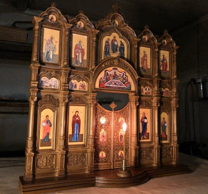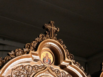 Made of solid oak, with the smallest details. Only our workshop makes such an iconostasis. This is an exclusive work.