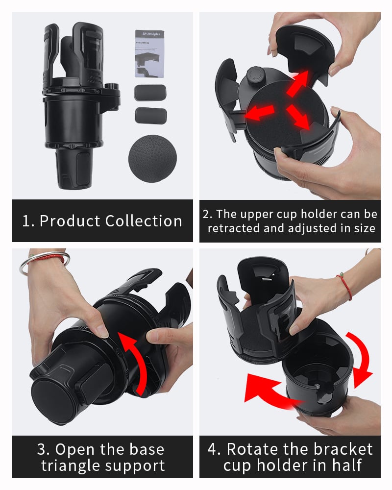 Flexible and Adjustable ✨: The upper cup holder can be retracted and adjusted in size, and the base can be rotated and telescoped. It's convenient and practical, suitable for containers of different sizes.