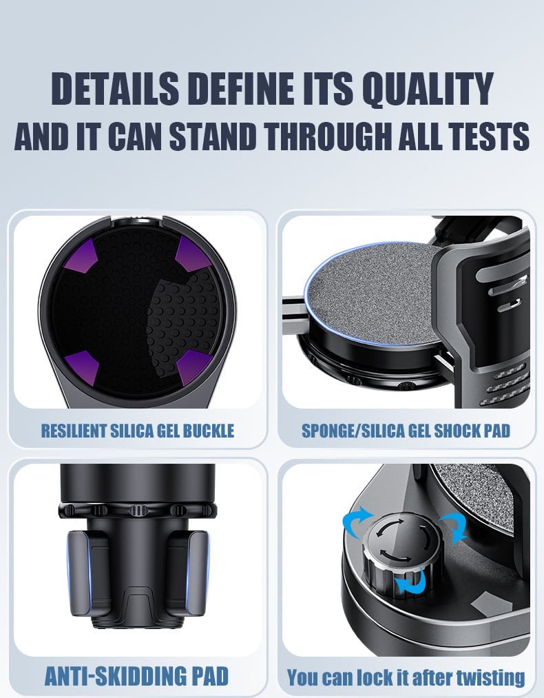 Thoughtful Shock Absorption and Noise Reduction 🧽: The sponge/silica gel shock pad at the bottom and the resilient silica gel buckle reduce driving noise and avoid cup collisions.