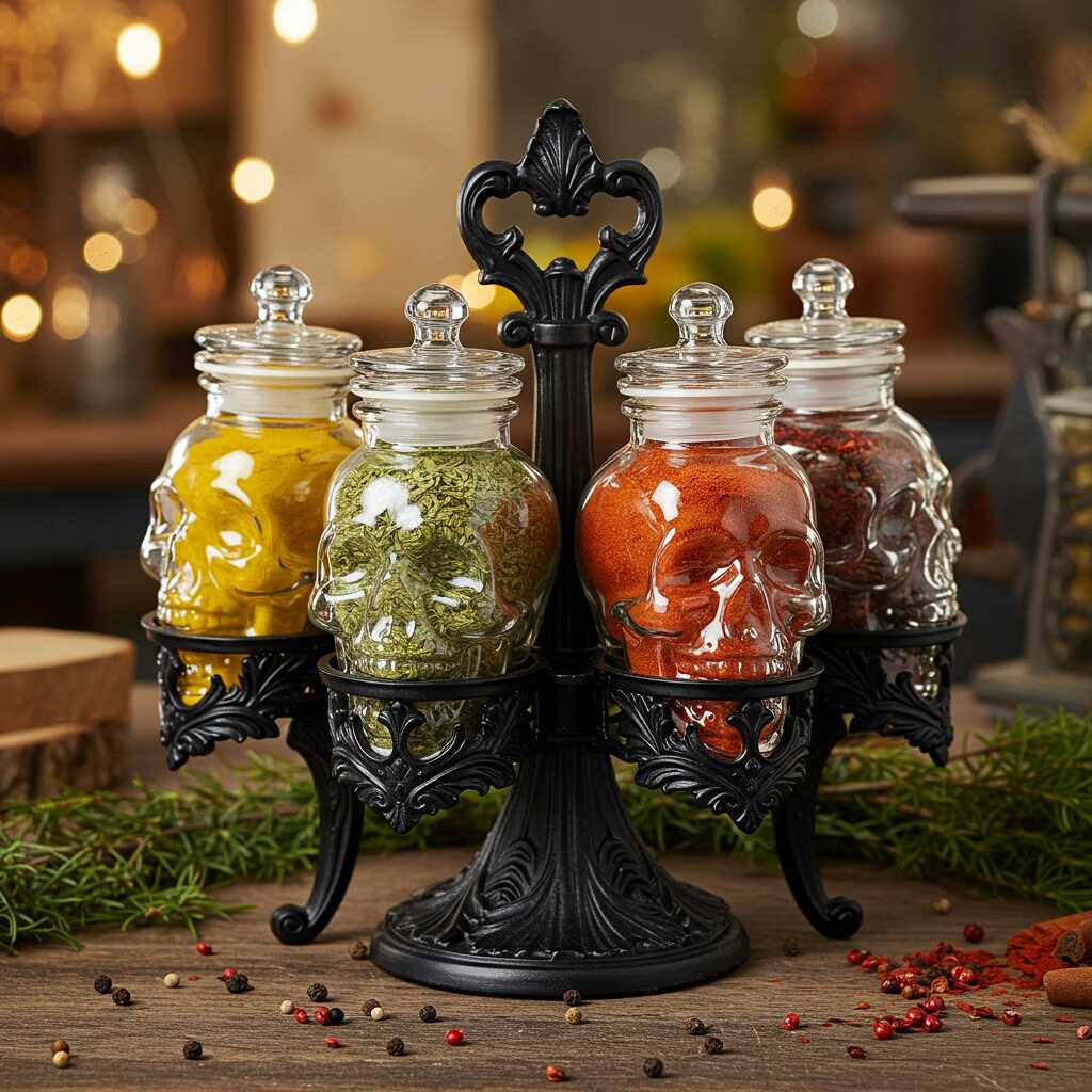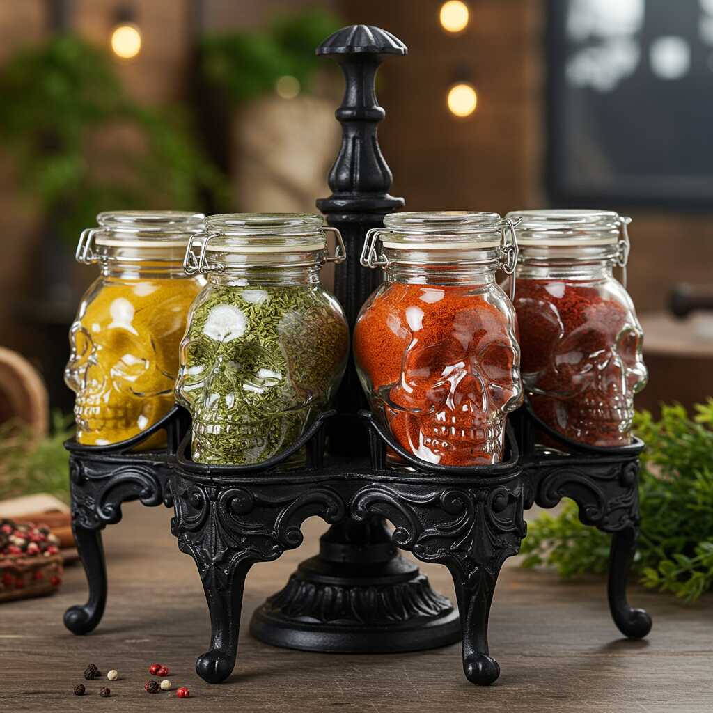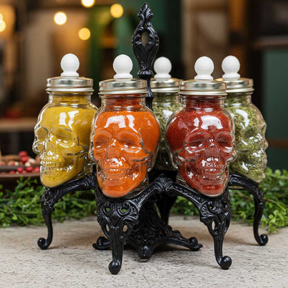 Transform your kitchen into a hauntedly organized space with this 6-jar skull spice set!😎💀