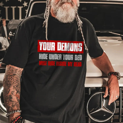 Viking Your Demons Hide Under Your Bed Mine Hide Inside My Head Printed Men's T-shirt